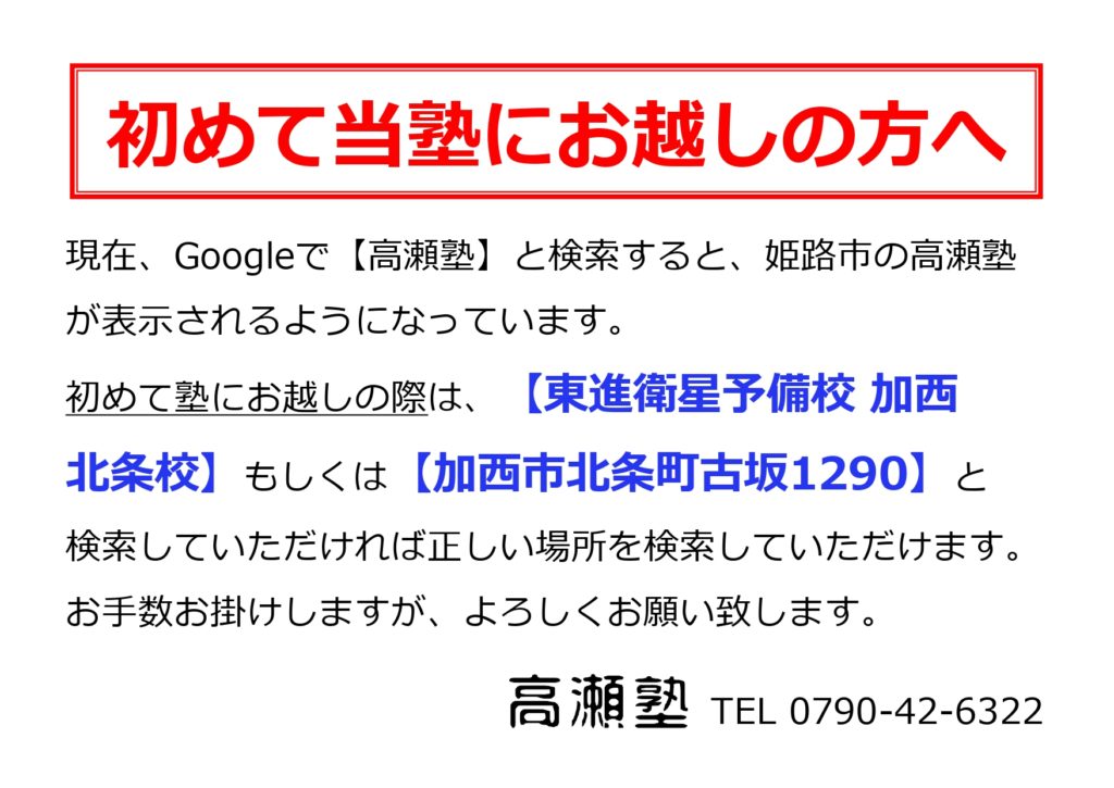 高瀬塾は1995年に開校以来、地域密着型の塾として加西市の子どもたちに指導を行っております。