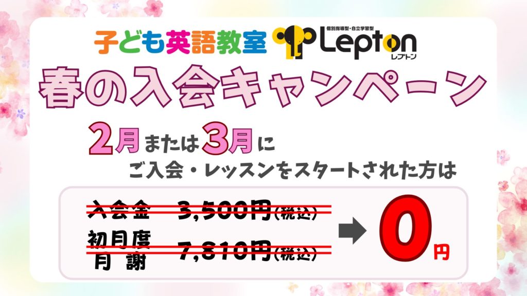 開校以来、入会金や諸経費は一切いただいておりません。
