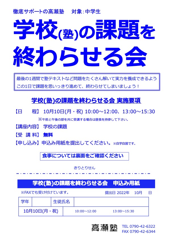 最後の1週間で塾テキストなど問題をたくさん解いて実力を養成できるようこの1日で課題を思いっきり進めて、終わらせてしまいましょう!
