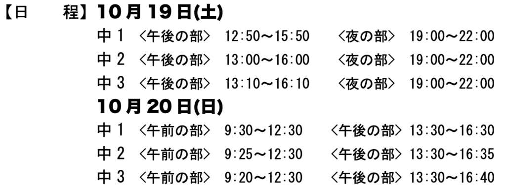 <北条中・加西中・善防中・滝野中・社中> 申込締切:10月16日(水)