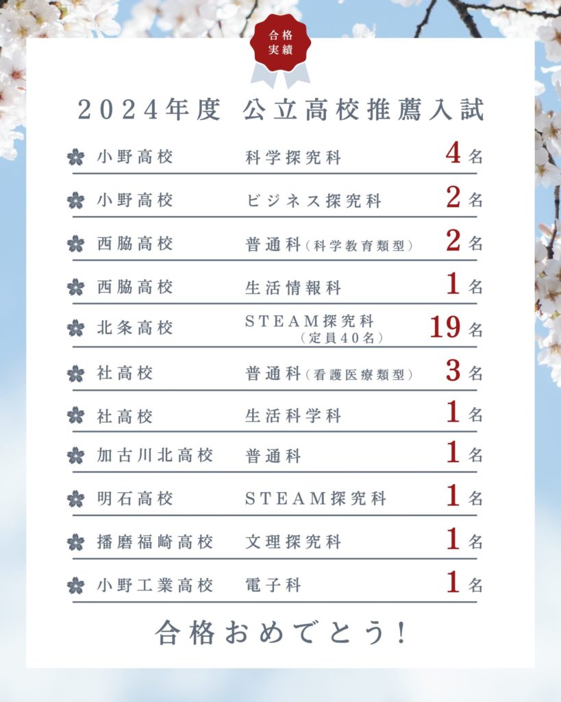 2月21日(金)に兵庫県公立高校 推薦入試の合格者発表がありました。